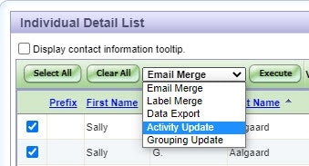 Once on the results screen, you can apply an offline activity universally to the searched individuals in your query.