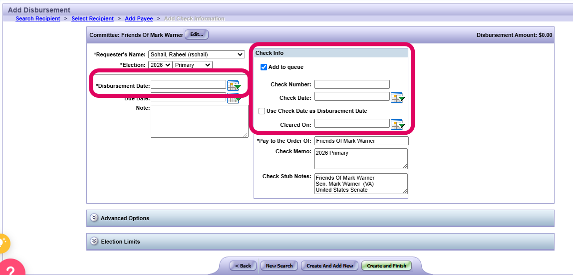 Adding Disbursement